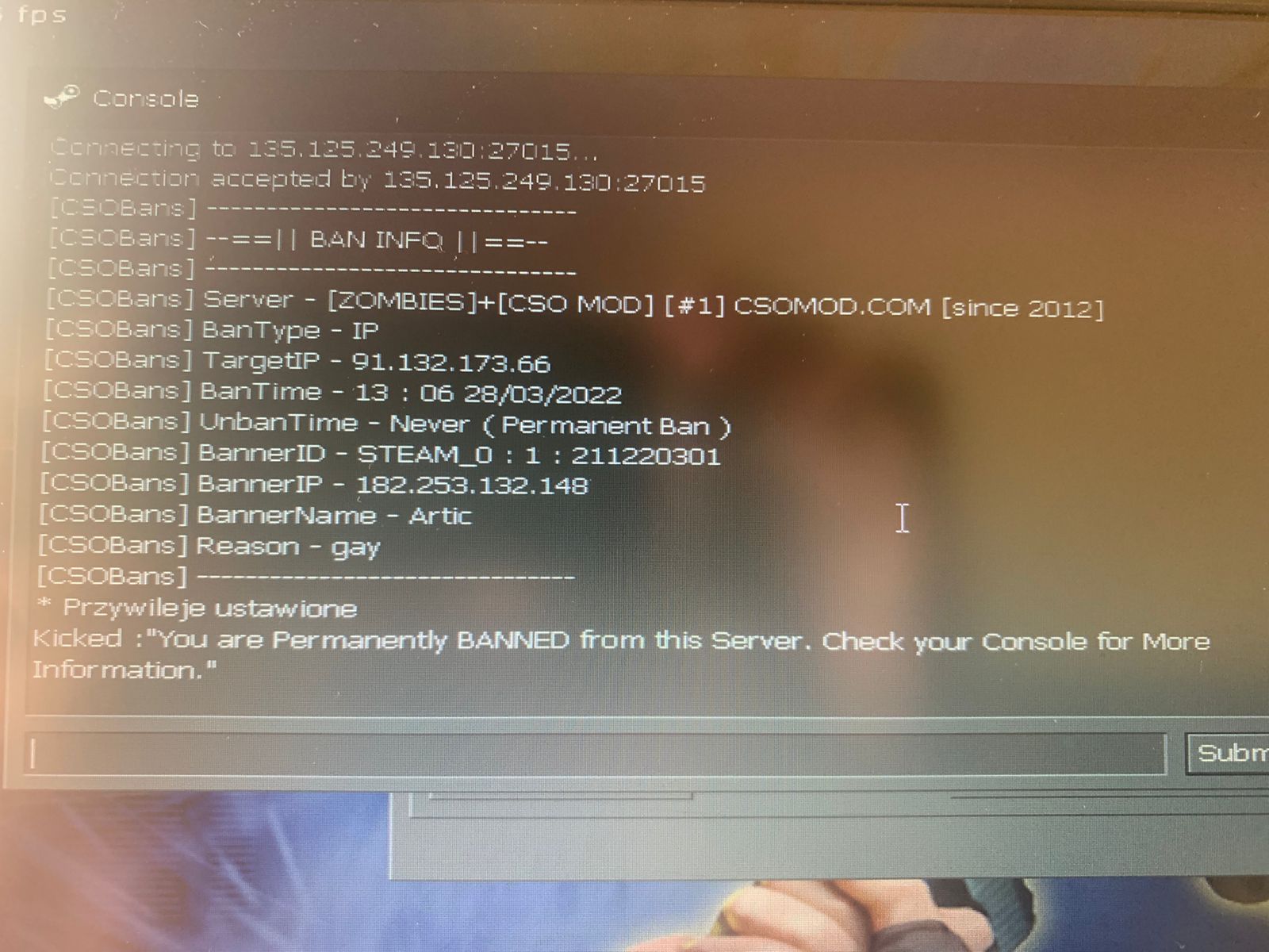 - Admin who banned you: Artic