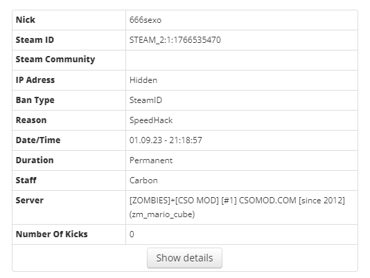 - Reason of complaint: Speed hack