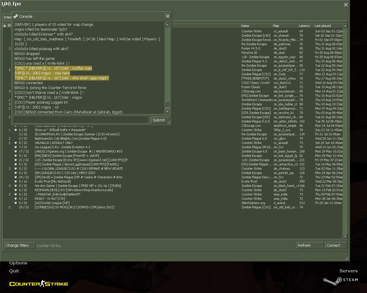 The players is Gagged. Also blet why the players reports when you are in the game .. ? Learn fast, because i see a lot of mistakes.