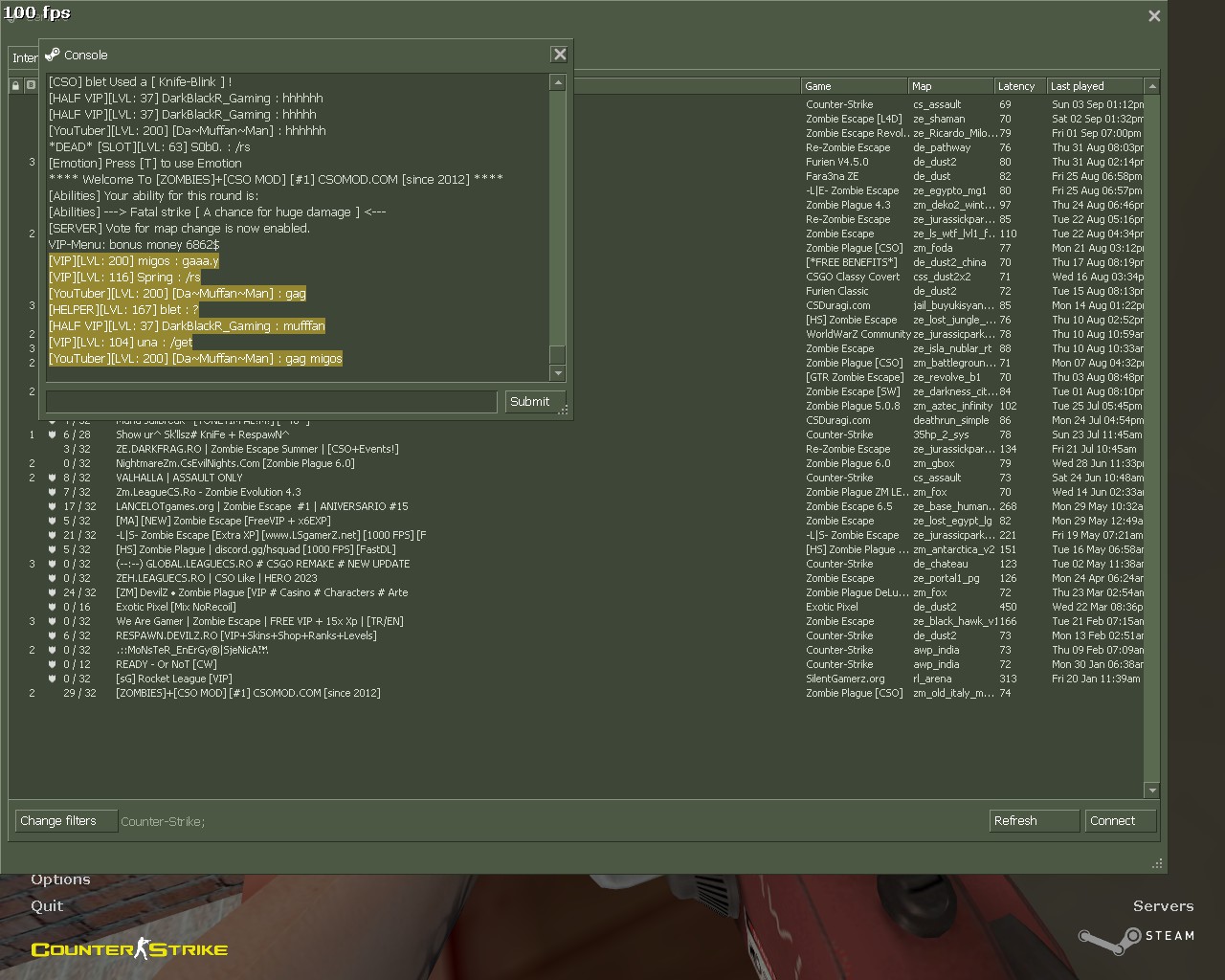 09/04/2023 - 10:26:04: [amx_gag.amxx] Gag: "blet<STEAM_0:1:24269344>" has gagged "migos<STEAM_2:0:1049718441>" for 5 minutes. (say / say_team / voicecomm)