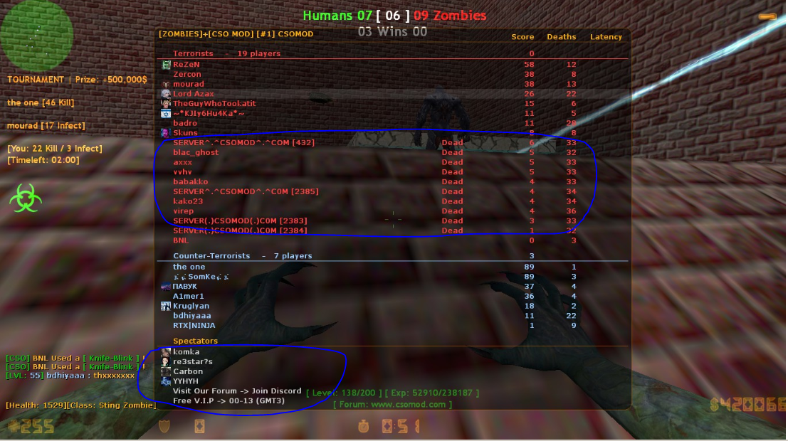 Second, the server is so boring because of afk players, zombies are always losing rounds because the first zombie will find only afk people to infect when they can't help him to play the game and win the round (also im not talking about buying boss, not everyone has the required level for it and the player must be first zombie.), even as a human it's not fun to kill afk zombies every round.