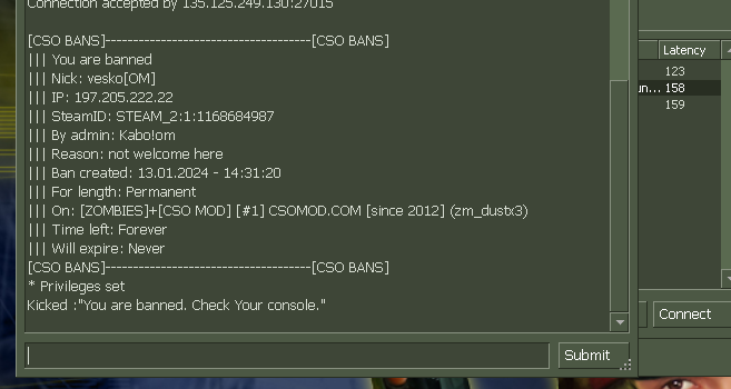 And don't tell anyone that I gave you the bus I tried logging in and played a little Then I came to leave and enter for him But I took the band But I promise you that I will not do it again. The only server that I love and play on is this, so do not deprive me of playing. Sorry - Admin who banned you: kabo!om