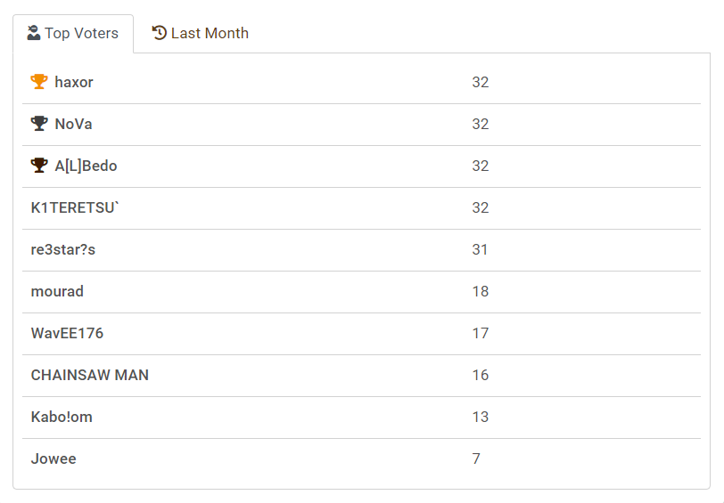 January 31, 2024 at 5:56 PM Official Post #1 haxor. - 1 month vip NoVa - 1 month vip Albedo - 1 month vip K1TERETSU` - 1 month vip mourad.lm - 20 days vip WavEE - 10 days vipadded