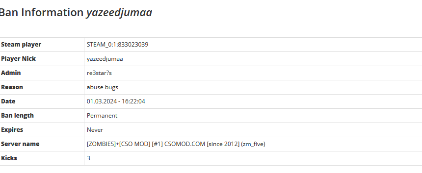 | Ban Type | SteamID |