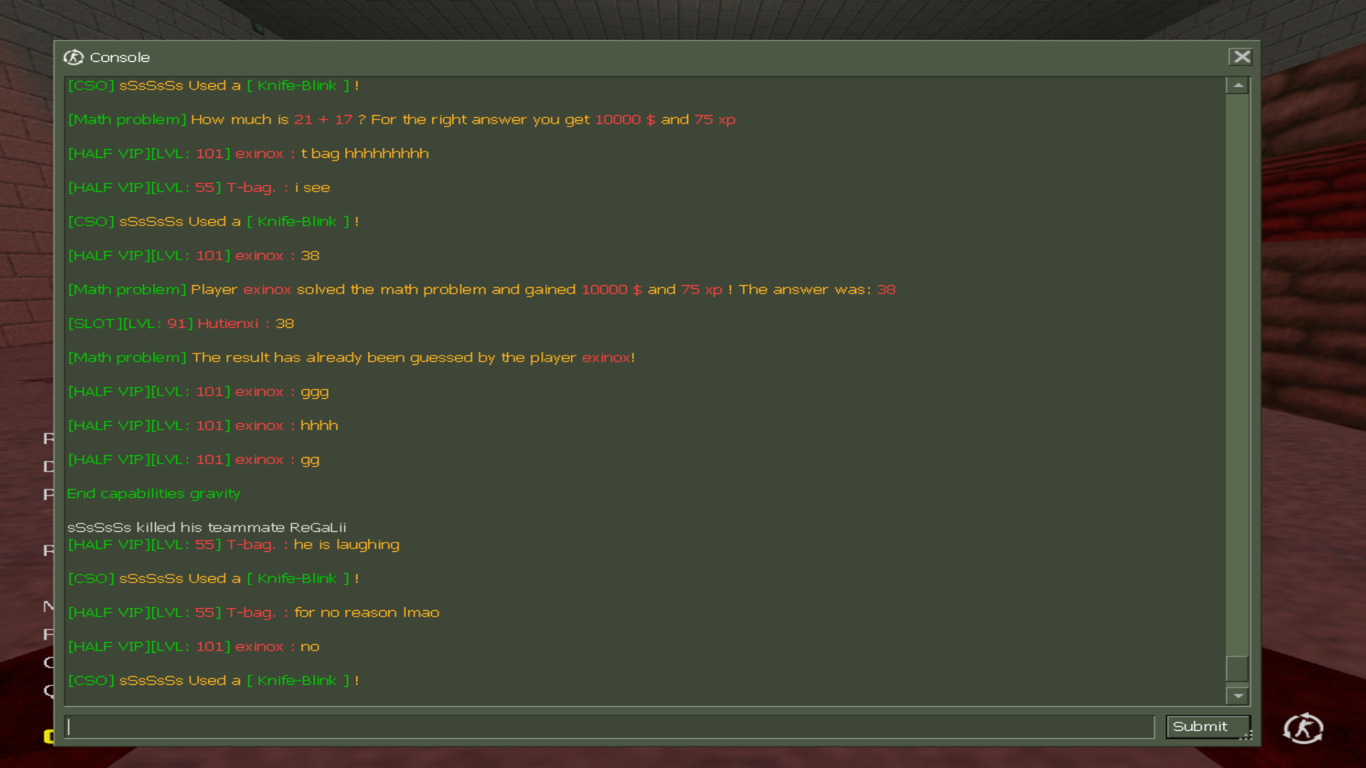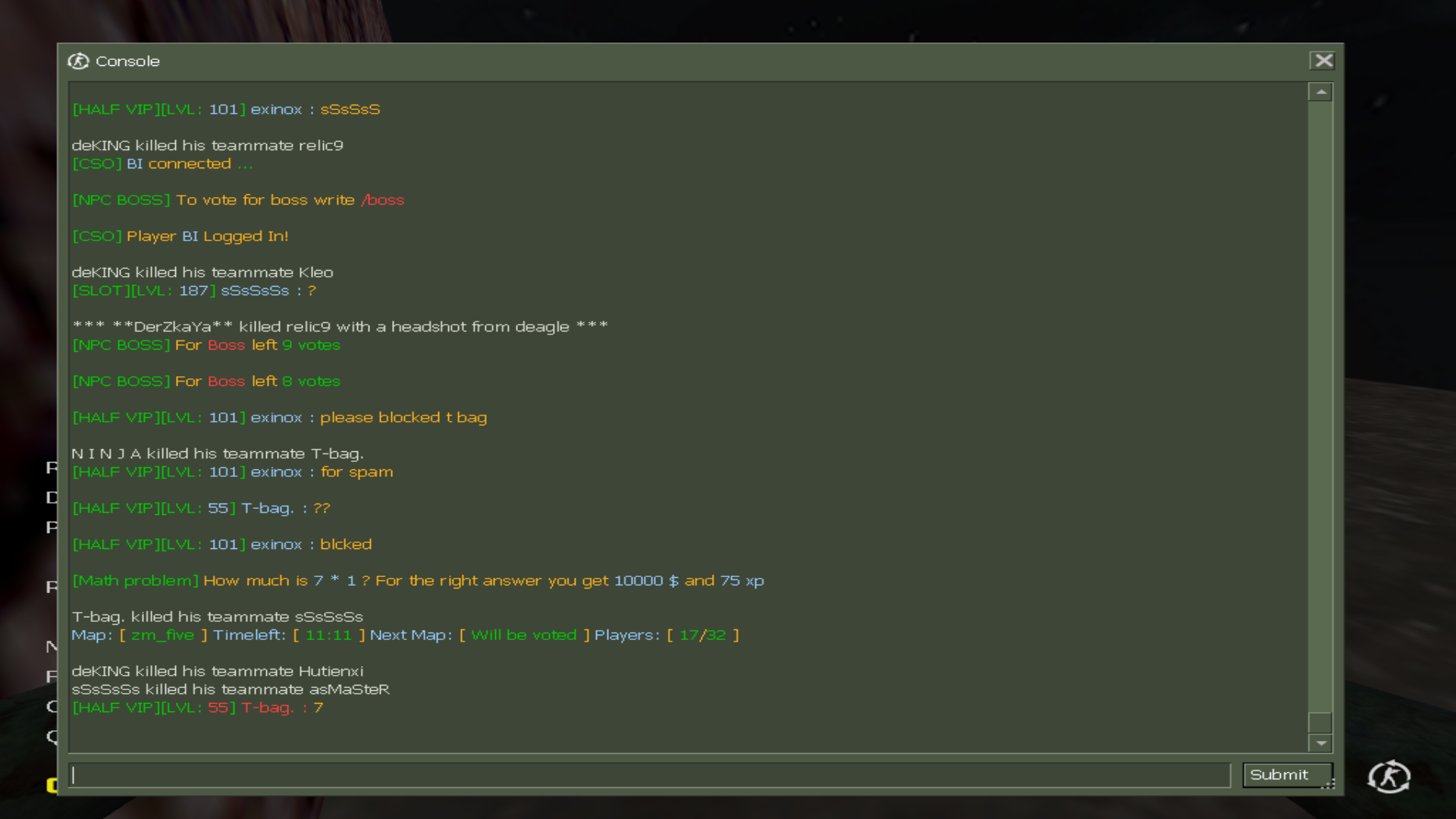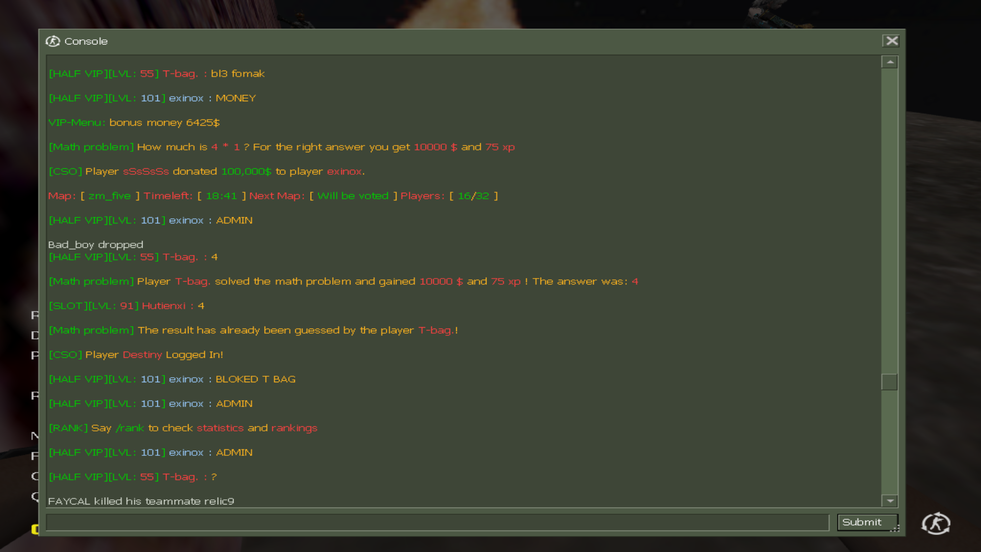 - Reason of complaint: Immature behavior in general, disrespectful towards others and wouldnt stop spamming in chat begging money or calling admin to deal with players he doesnt like. I tried telling him to stop multiple times him but he just wont listen. So i filed a report