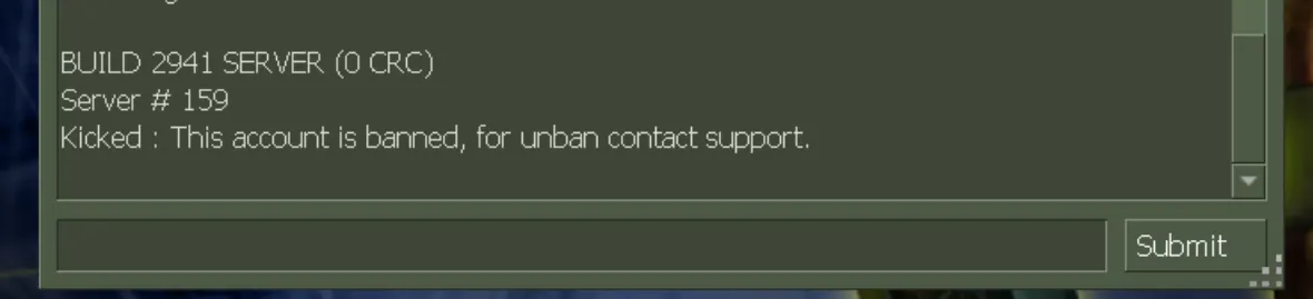 September 2, 2024 at 3:31 PM #3 Nickname: freedomYour ip and steamID: STEAM_0:0:653520715The reason of ban: i dont knowAdmin who banned you: i dont knowProof (screenshot of your console):
