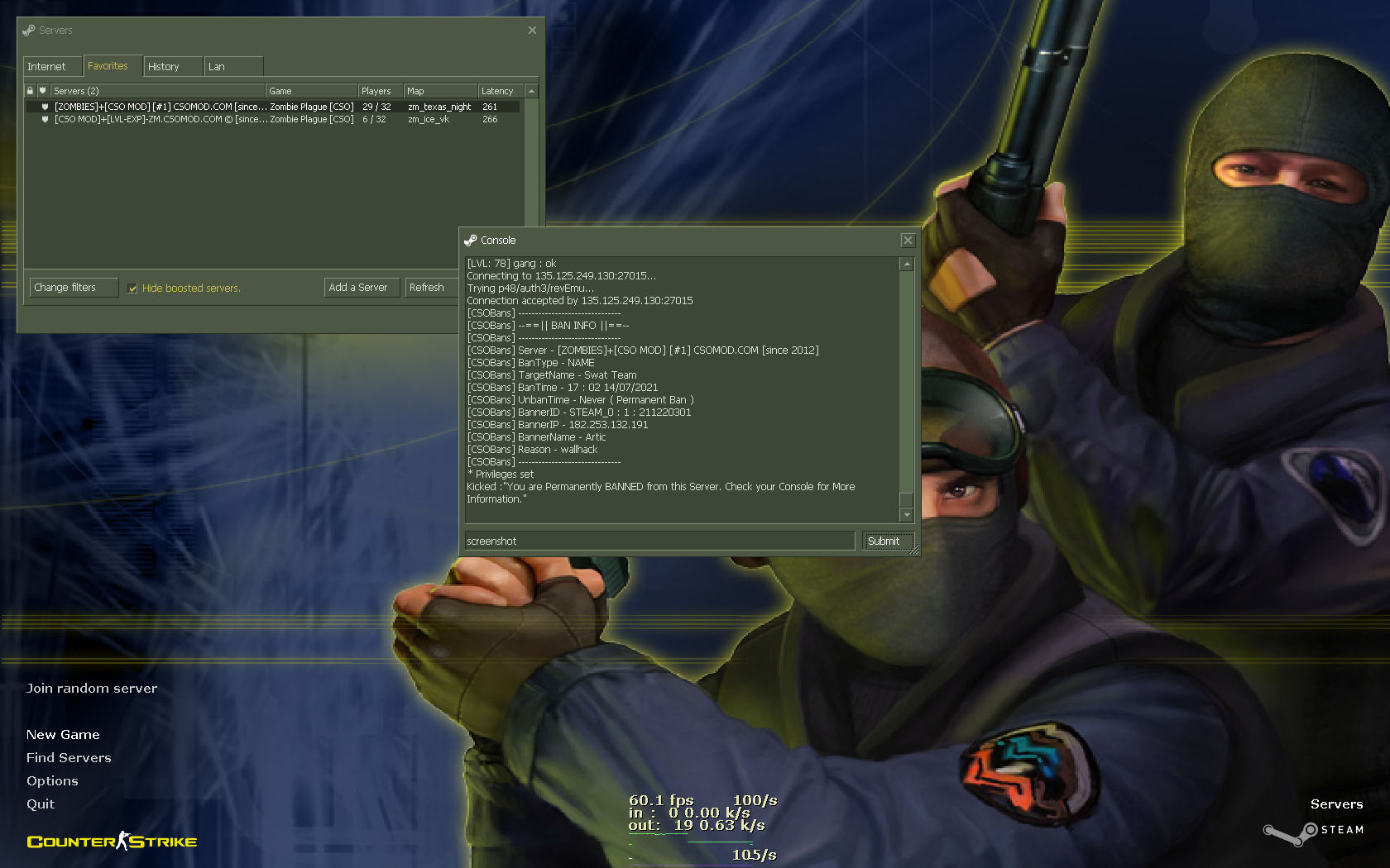 [CSOBans] BannerID - STEAM_0 : 1 : 211220301