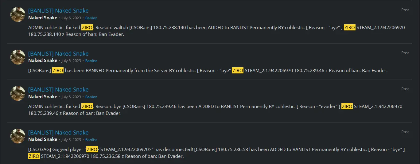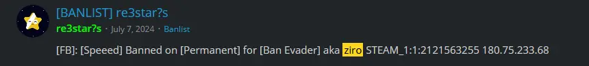 - Your ip and steamID: "ziross" 4059 STEAM_0:0:1233320218 0 00:10 79 21