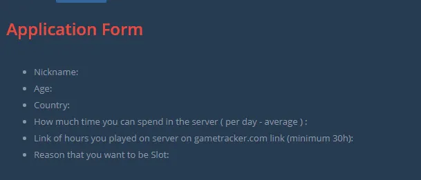 nickname: soylala age :20 country: perú cuánto tiempo puedes pasar en el servidor (por día - promedio): enlace de horus que jugaste en el servidor en gametracker. com link (mínimo 30h): Razón por la que quiere ser slto: