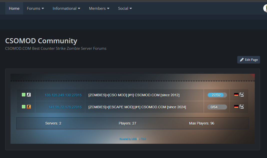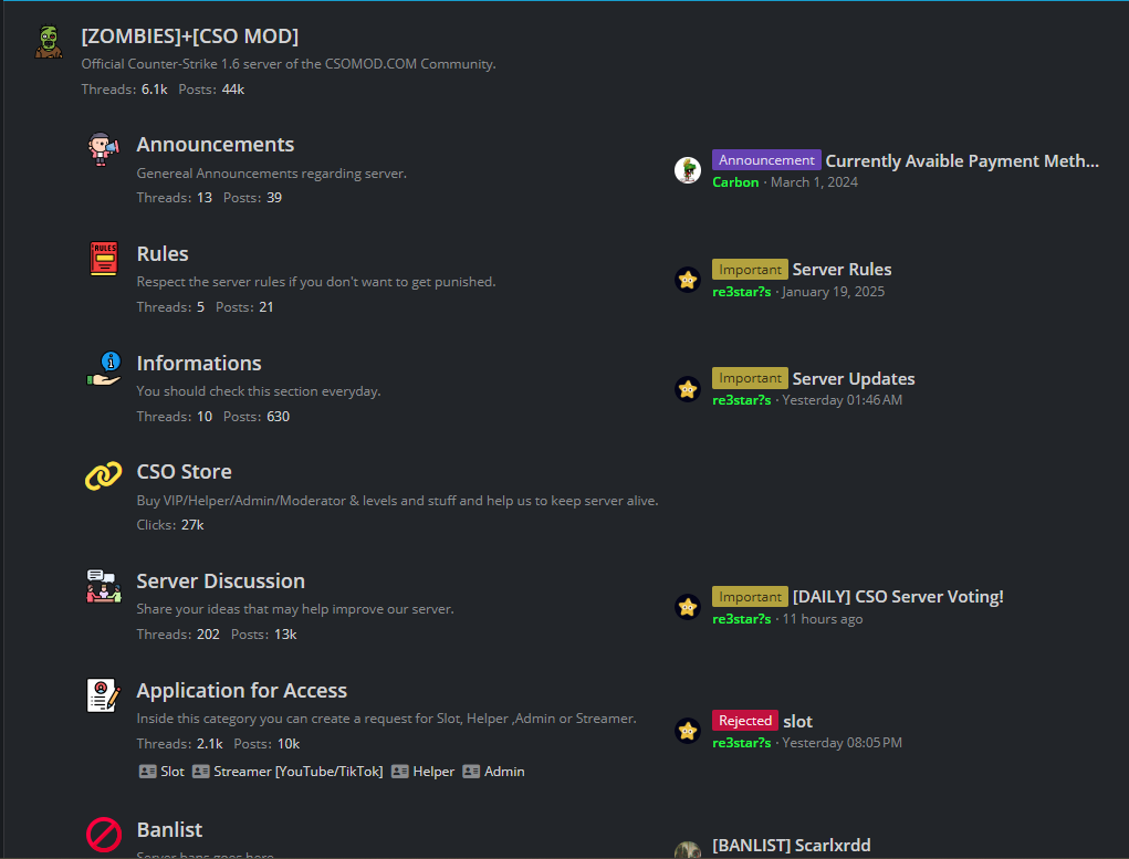 - CSOMOD Communitycsomod.com+ Added new forum category and moved gametracker banner stuff there and also removed some pictures from few forum categories to boost forum index page loading time