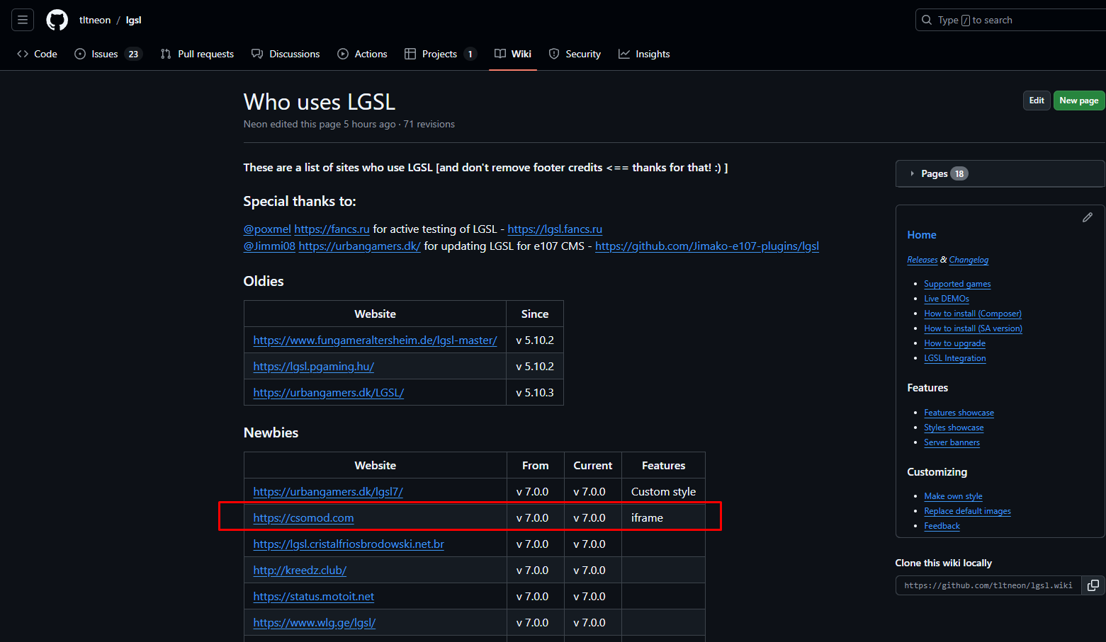 Servers list style is refreshed + we are officially listed in LGSL users at LGSL Github