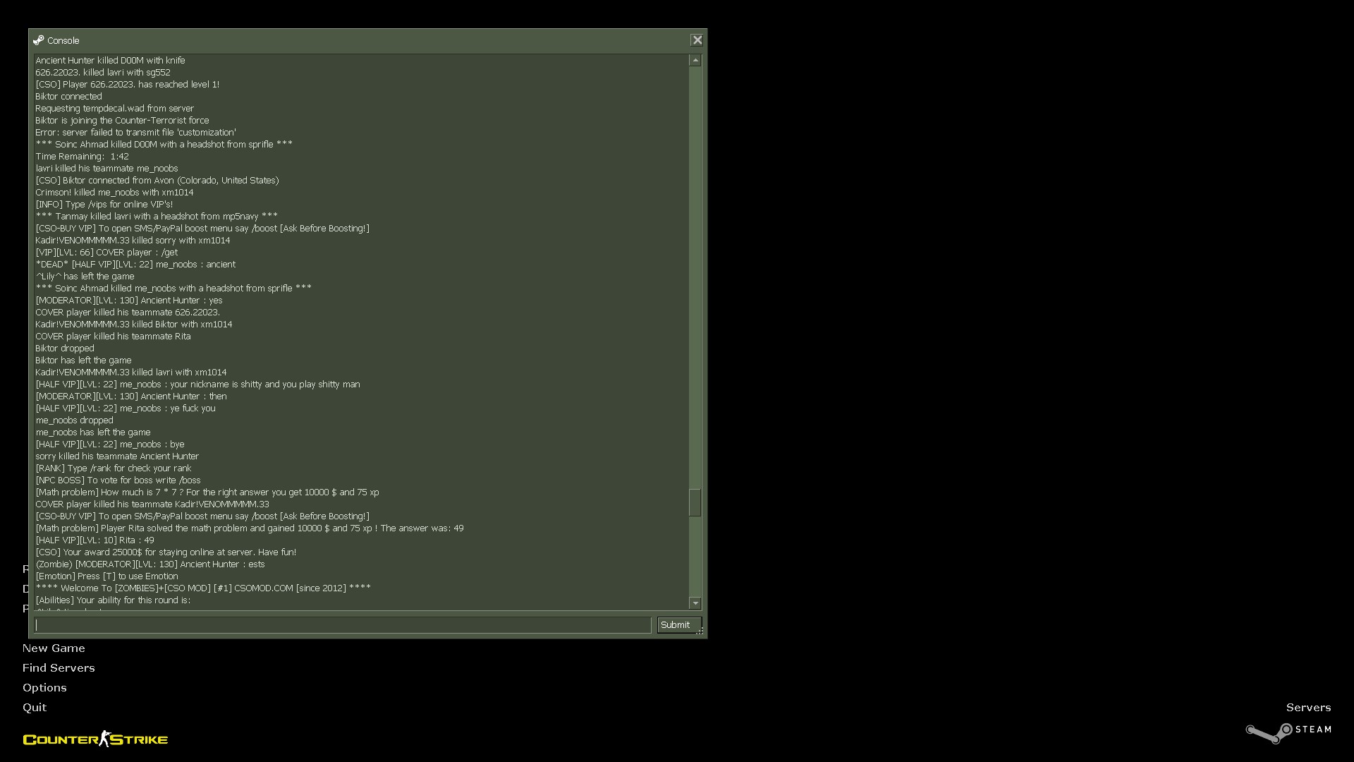 [CSOBans] (1)doom has been BANNED Permanently from the Server BY Ancient Hunter. [ Reason - "<null>" ] (STEALING NICK)