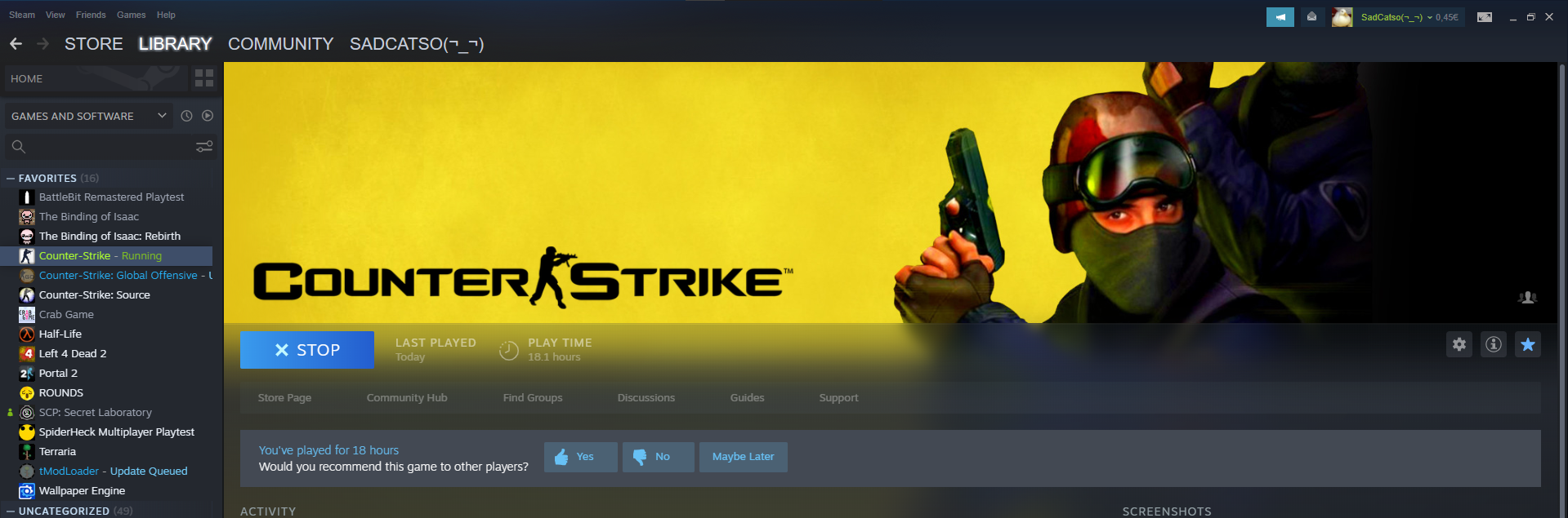 Steam Game Library Picture proof for CS 1.6 (If your profile or games are hidden):