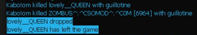 [CSOBans] monster has been BANNED Permanently from the Server BY Kabo!om. [ Reason - "bye" ]