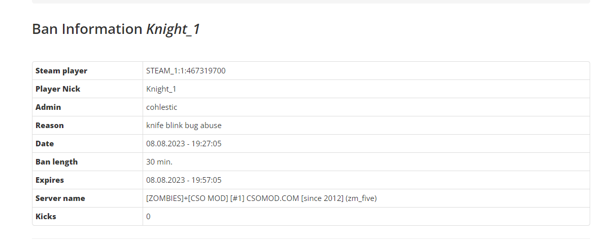 [FB]: Player [Head_Hunter] will be banned for [knife blink bug] on [30 minutes]