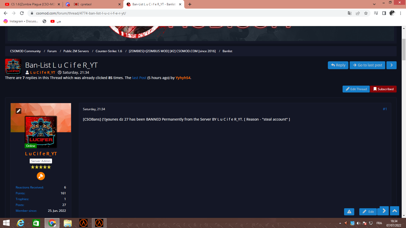 ye when i will get promoted to admin i will make sure to ban him by steamid and ip then he will cannot join anymore and steal others account