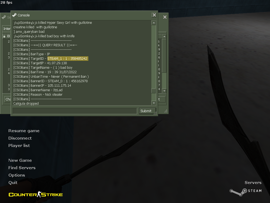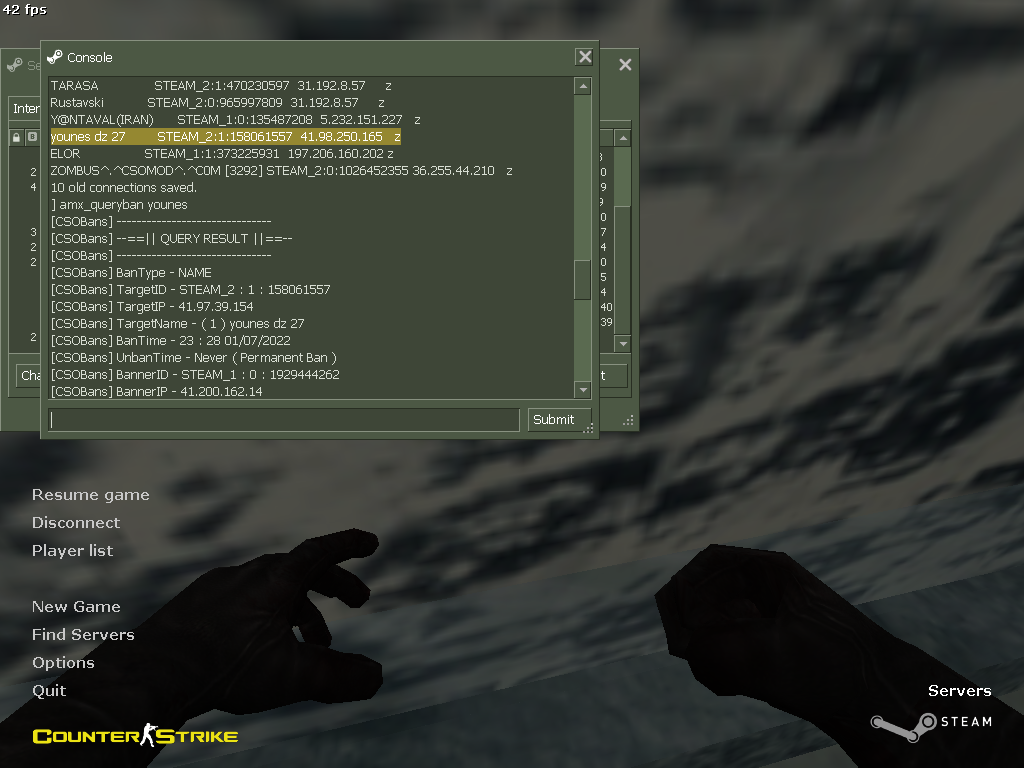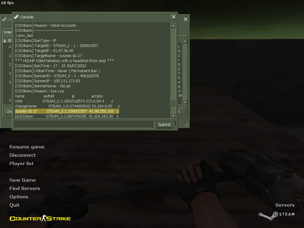 [CSOBans] younes dz 27 has been BANNED Permanently from the Server BY ItzLad. [ Reason - "bye cya" ]