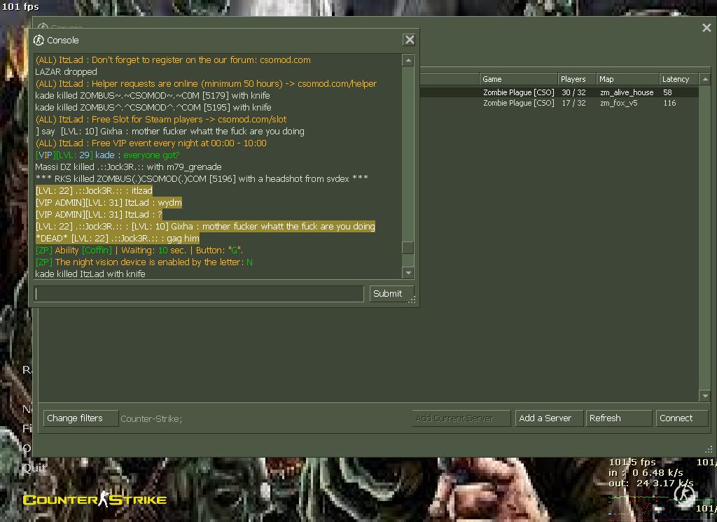 players are insulting and he is just focus on gameplay and he gags them in the round also in the first time of insulting boom 20/10 mins gag also about bhoping , if he sees you bhoping boom 7 or 10 mins nojump