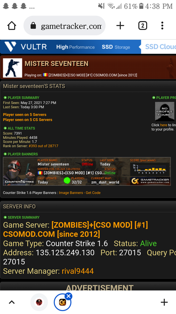 Link of hours you played on server on gametracker.com link (minimum 40h):https://www.gametracker.com/pl…/server.csomod.com:27015/