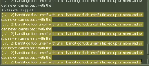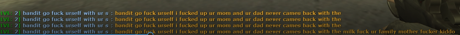 [LVL: 2] bandit go fuck urself with ur s : if i`ll catch u in real life im gonna to cut ur head nigga