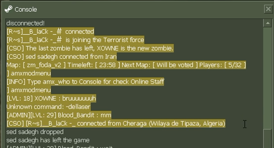 Map: [ zm_snow_vk4 ] Timeleft: [ 30:43 ] Next Map: [ Will be voted ] Players: [ 11/32 ]
