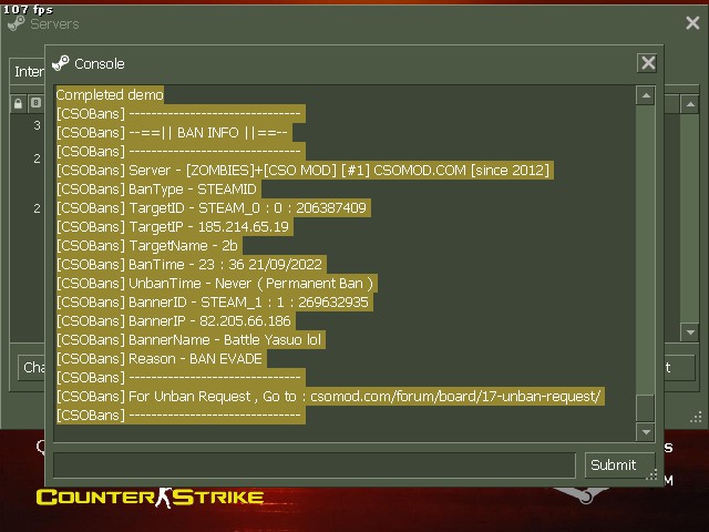 [CSOBans] 2b has been UNBANNED BY "Kabo!om"