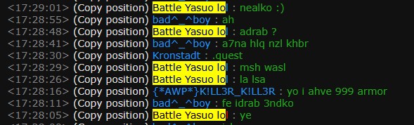 <21:59:35> (Copy position) <STEAM_1:1:269632935 | 103.27.144.50> Battle Yasuo lol : xD