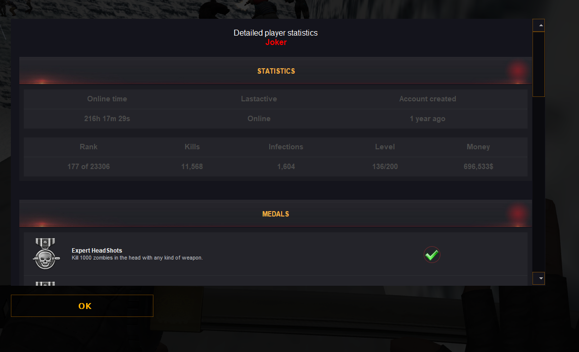 - Link of hours you played on server on gametracker.com link (minimum 90h): I will send screenshot