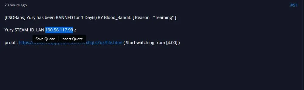[CSOBans] BannerID - STEAM_0 : 1 : 478179473