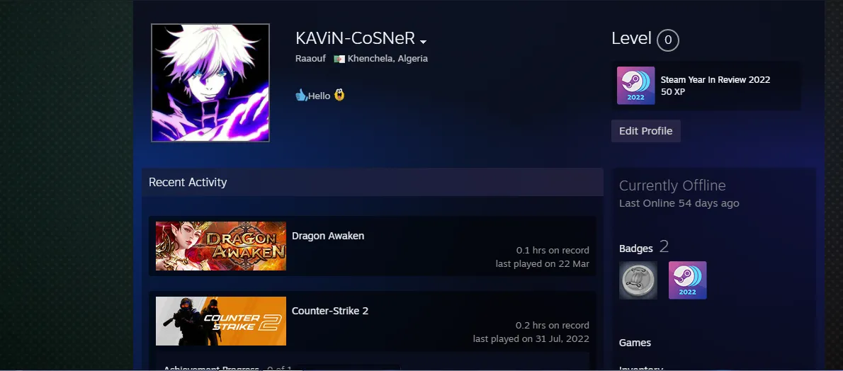 - Steam Profile Link : https://steamcommunity.com/id/532546323462/