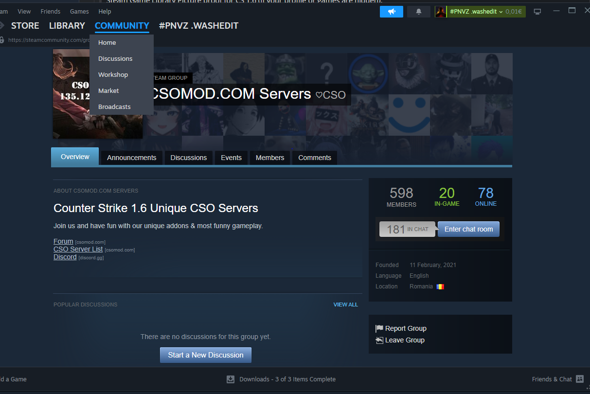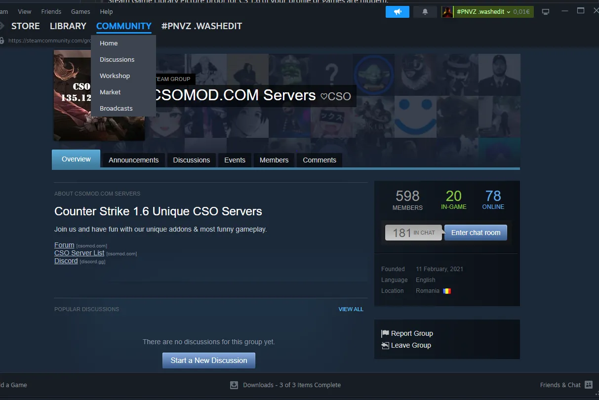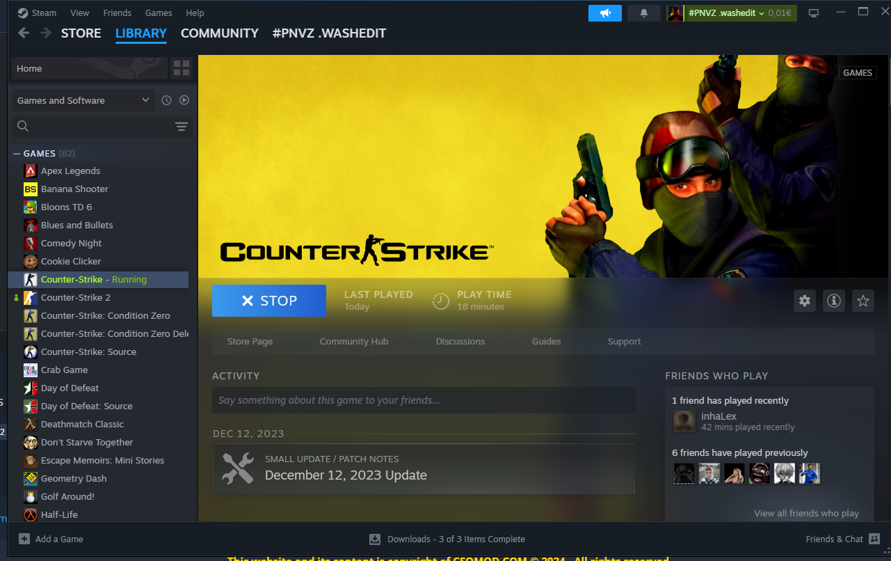 Steam Game Library Picture proof for CS 1.6 (If your profile or games are hidden):