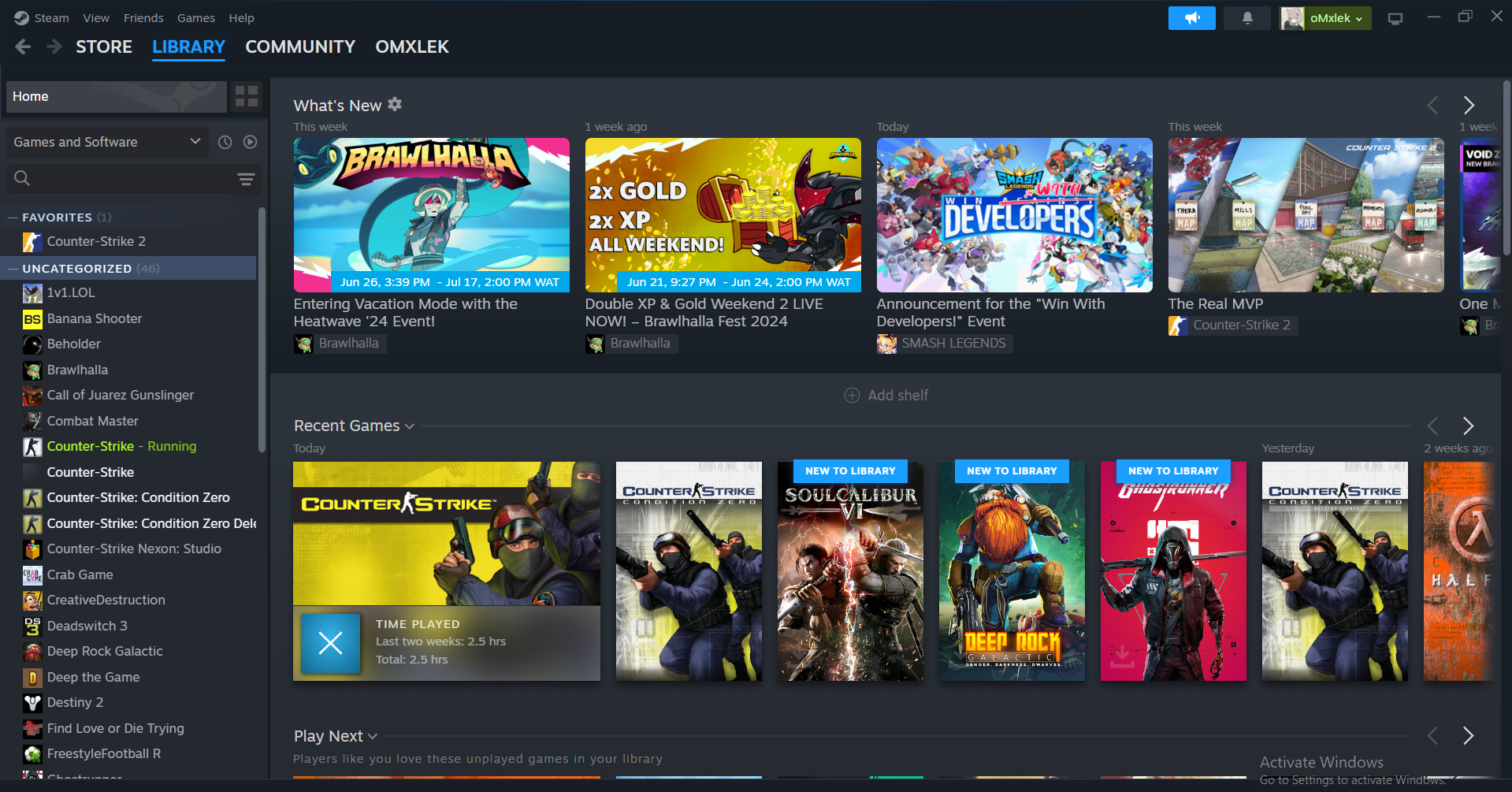 Steam game Library of me owning Counter Strike 1.6 Steam: