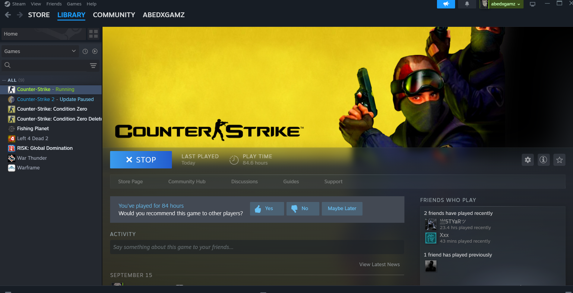 Steam Game Library Picture proof for CS 1.6 (If your profile or games are hidden): not hidden
