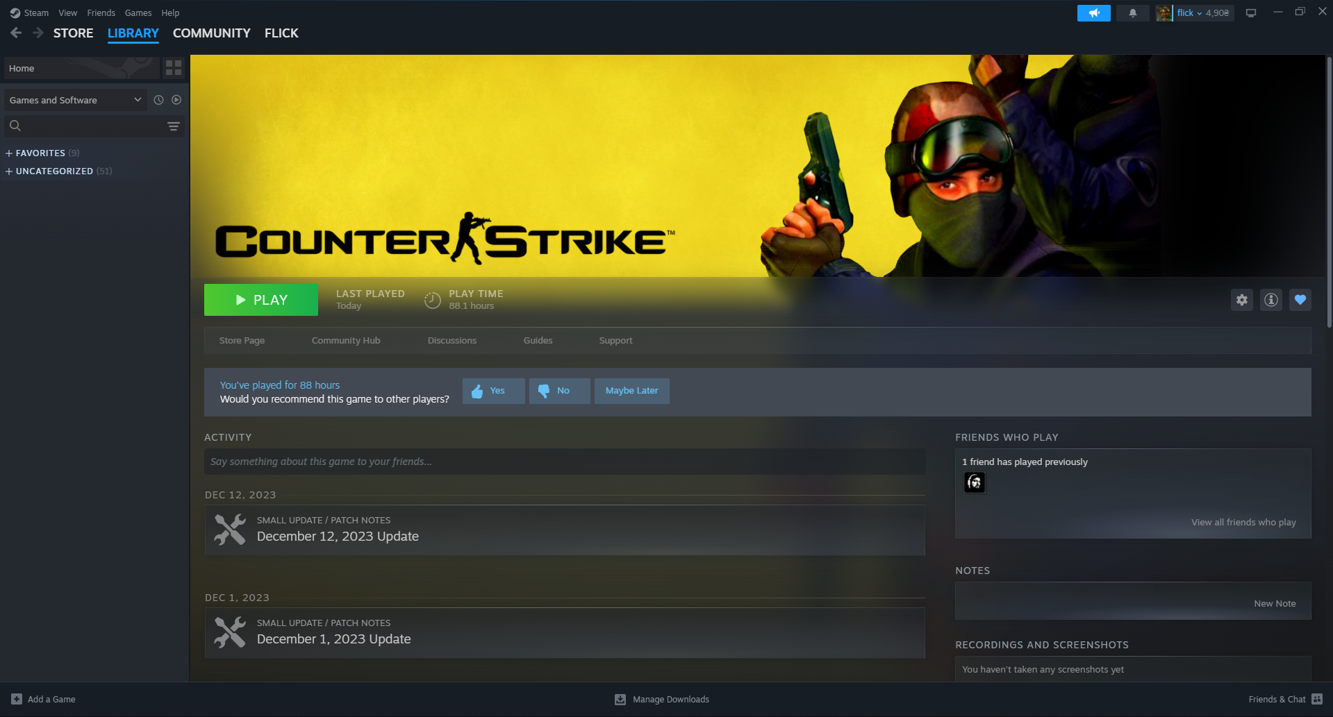 Steam Game Library Picture proof for CS 1.6 (If your profile or games are hidden):