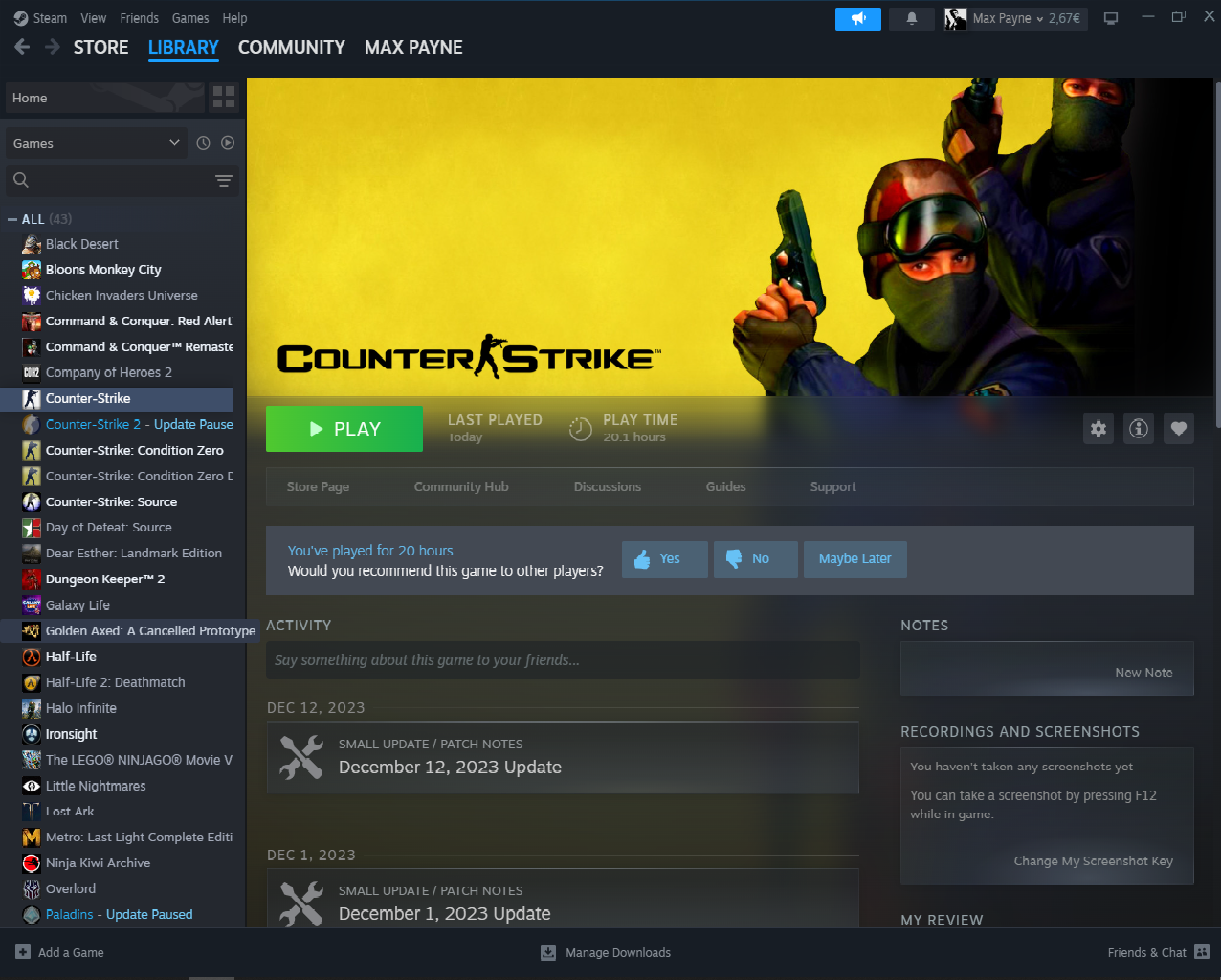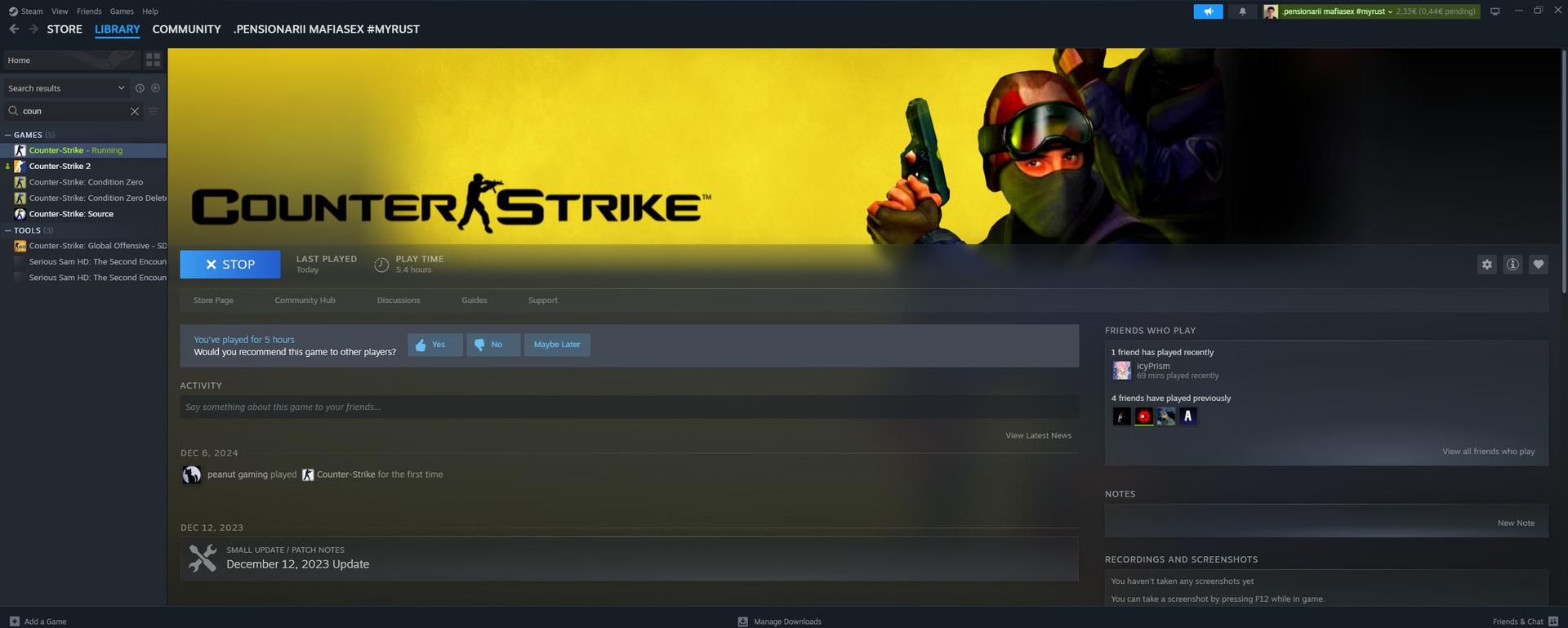 Steam Game Library Picture proof for CS 1.6