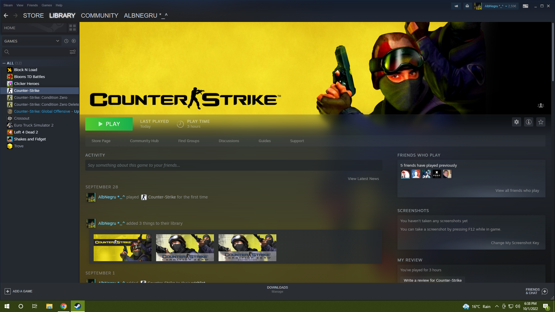Steam Game Library Picture proof for CS 1.6 (If your profile or games are hidden):