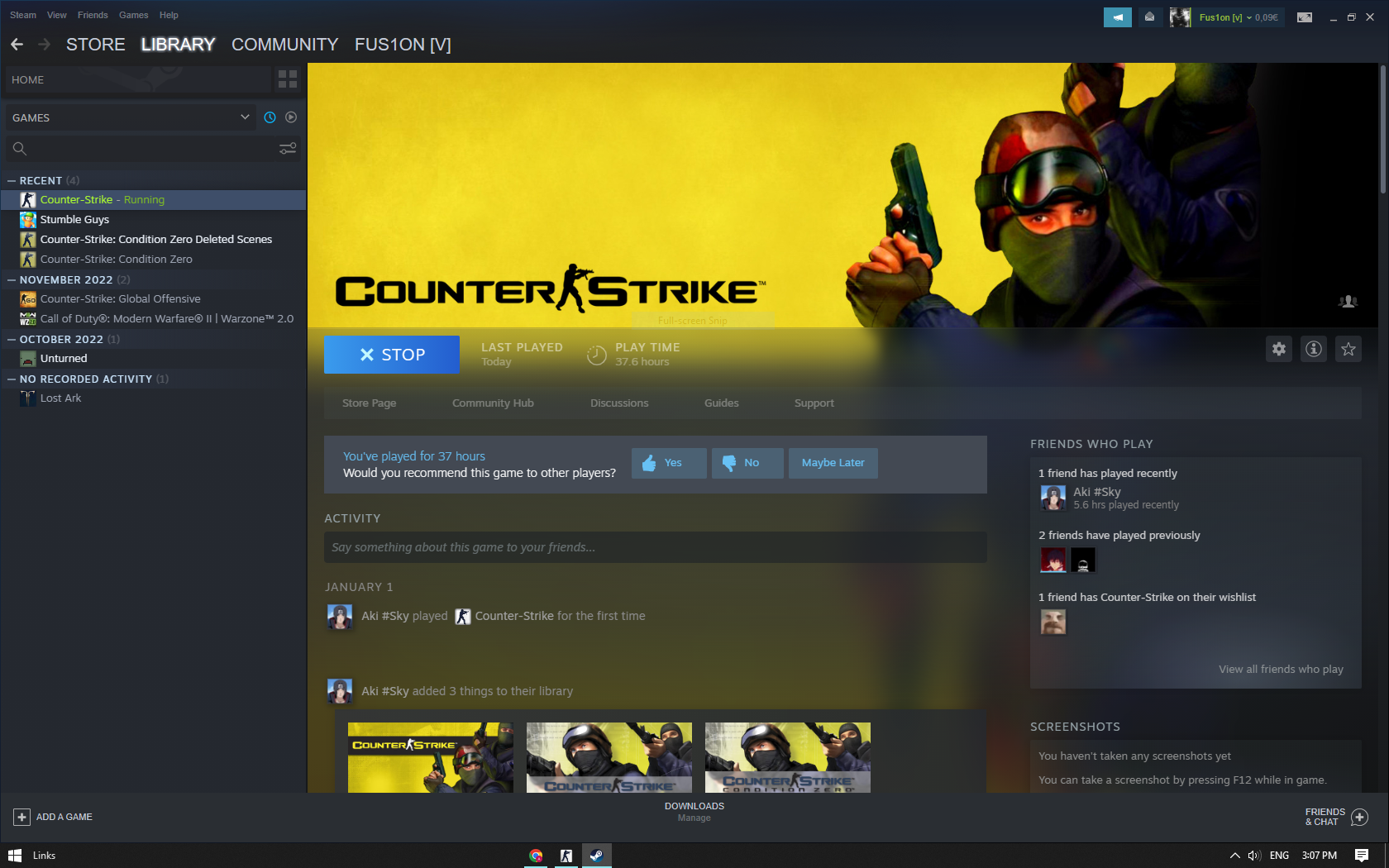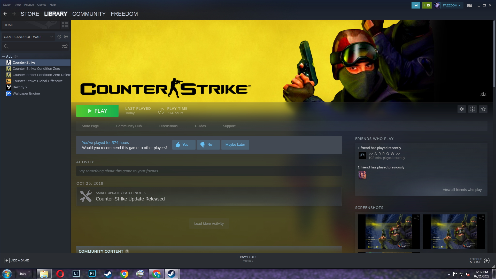 Steam Game Library Picture proof for CS 1.6 (If your profile or games are hidden):