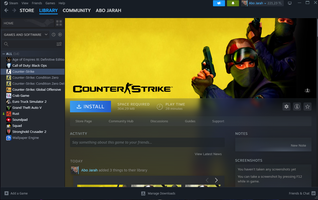 Steam Game Library Picture proof for CS 1.6 (If your profile or games are hidden): public profile