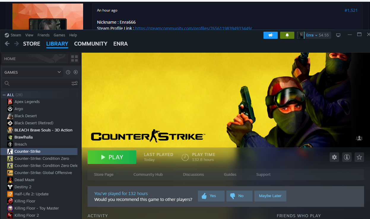 Steam Game Library Picture proof for CS 1.6 (If your profile or games are hidden):