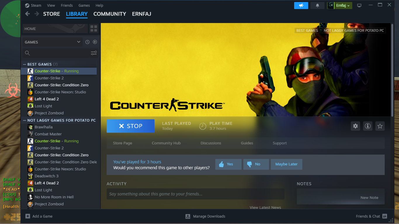 Steam Game Library Picture proof for CS 1.6 (If your profile or games are hidden):