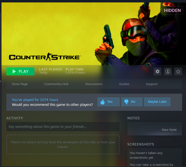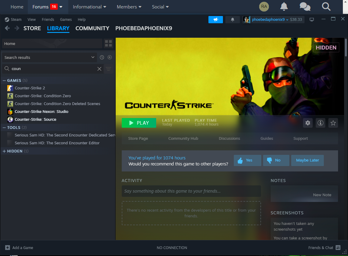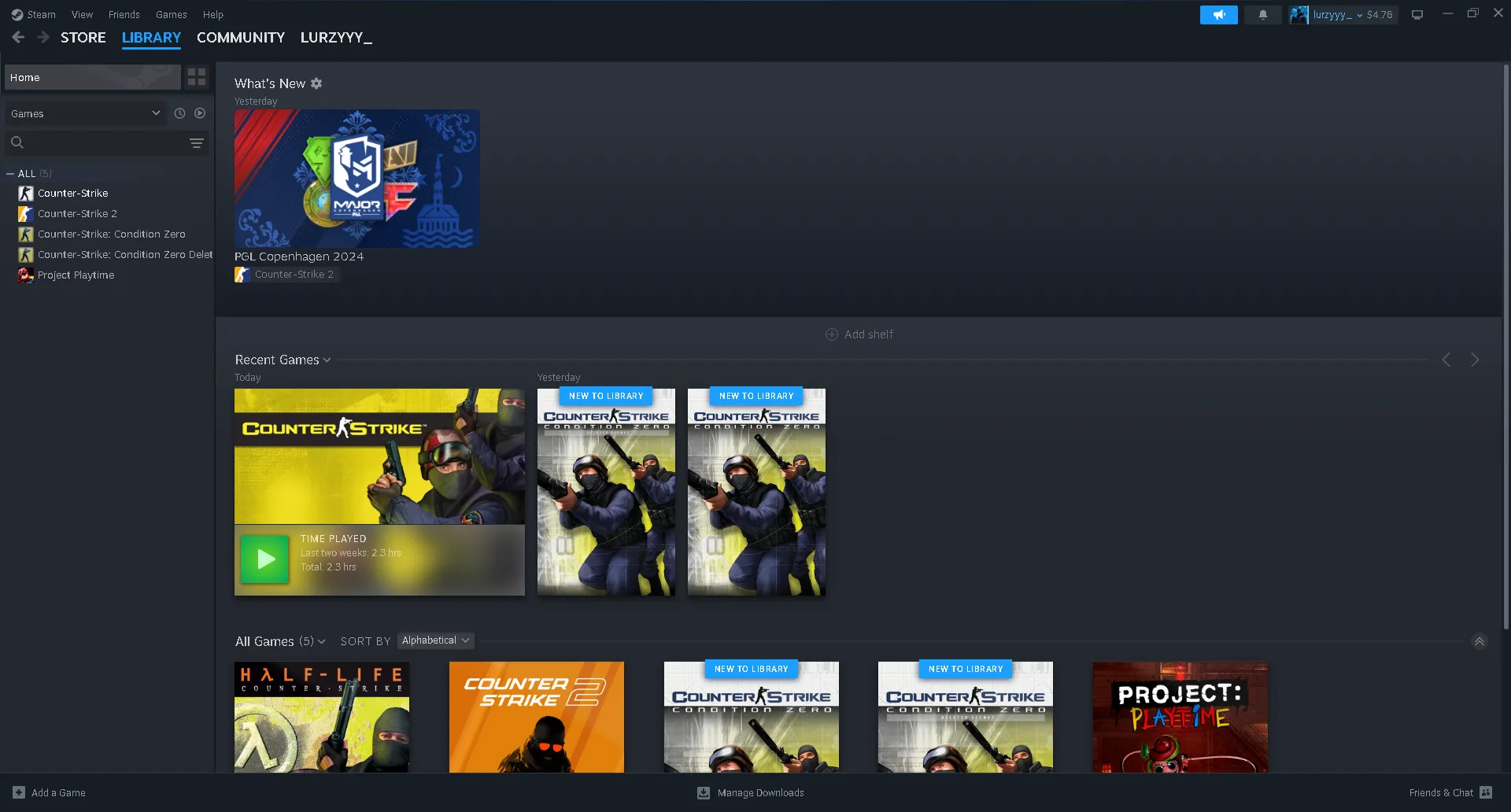 Steam Game Library Picture proof for CS 1.6 (If your profile or games are hidden):