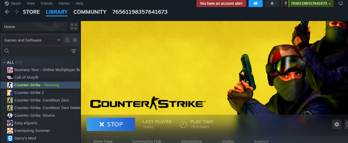 Steam Game Library Picture proof for CS 1.6 (If your profile or games are hidden):