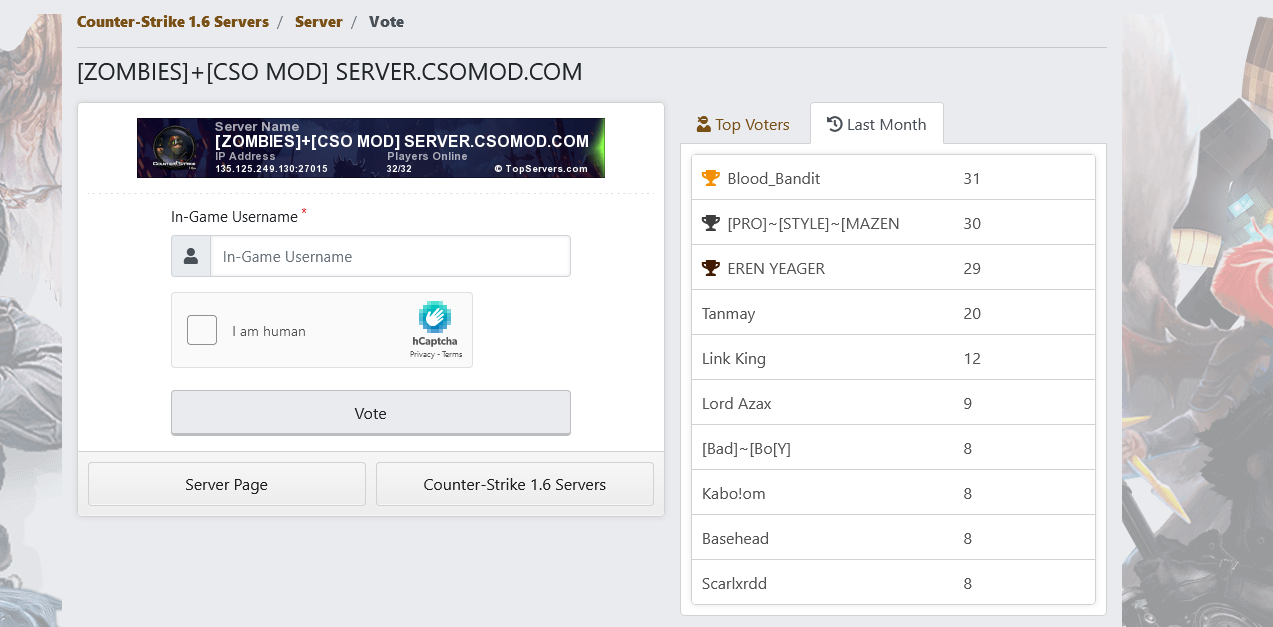 🎉 Free VIP for Daily Vote Server ⭐