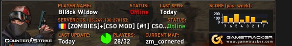 [CSOBans] Server - [ZOMBIES]+[CSO MOD] [#1] CSOMOD.COM [since 2012] [CSOBans] BanType - NAME [CSOBans] TargetID - STEAM_1 : 0 : 669263439 [CSOBans] TargetIP - 154.192.16.59 [CSOBans] TargetName - Bl@ck W!dow [CSOBans] BanTime - 10 : 52 : 39 16/02/2023 [CSOBans] UnbanTime - 16 : 52 : 39 16/02/2023 [CSOBans] Timeleft - 5 Hour ( s ) 22 Minute ( s ) 15 Second ( s ) [CSOBans] BannerID - STEAM_0 : 0 : 102625428 [CSOBans] BannerIP - 85.187.7.92 [CSOBans] BannerName - Scarlxrdd [CSOBans] Reason - bhop