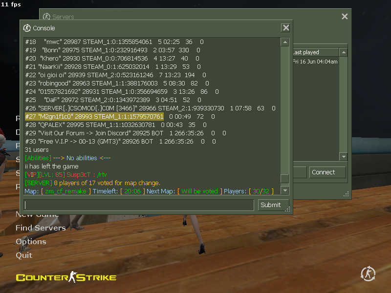 ADMIN !DeMoN!: fucked (1)SERVER^.^CSOMOD^.^COM [3138]. Reason: stealer-fag