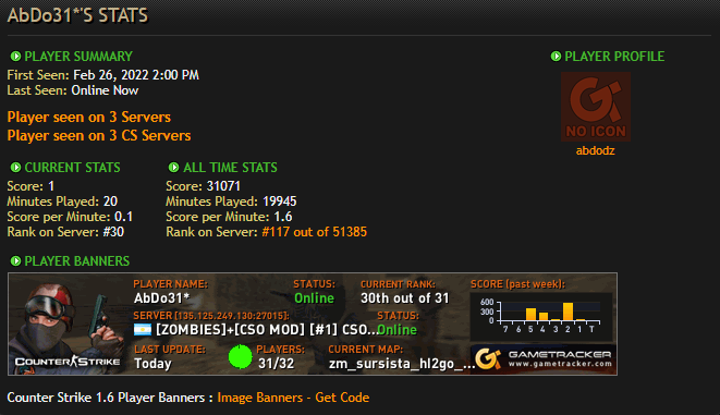 - Link of hours you played on server on gametracker.com link (minimum 40h): https://www.gametracker.com/player/AbDo31%…omod.com:27015/