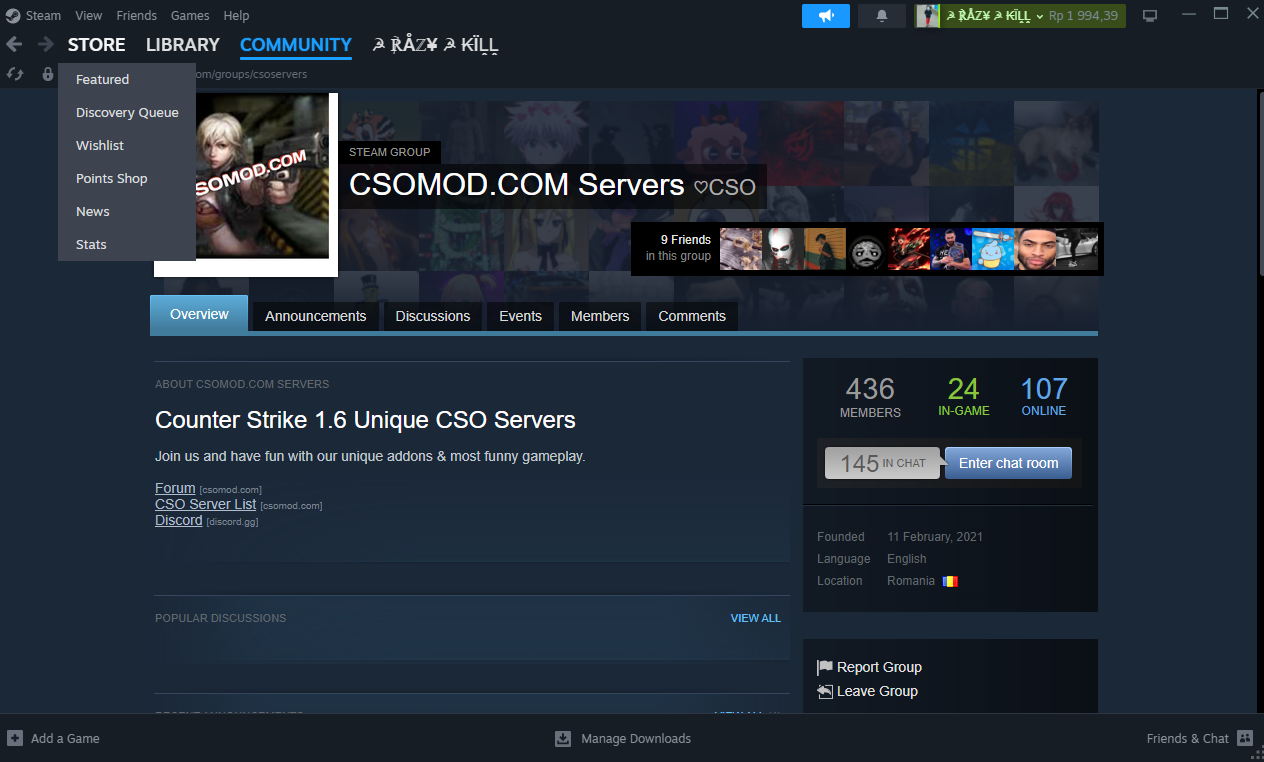 Steam Game Library Picture proof for CS 1.6 (If your profile or games are hidden):