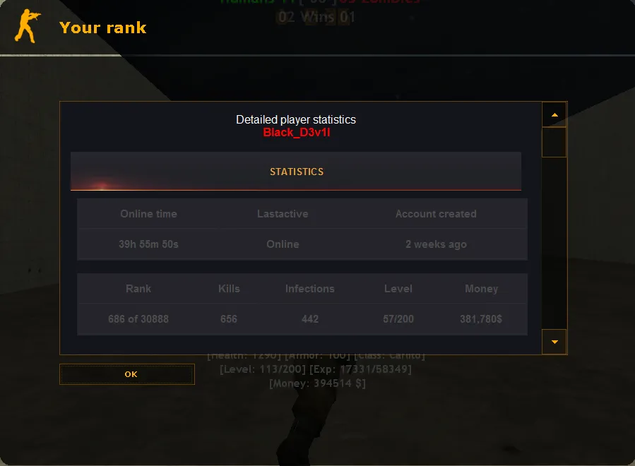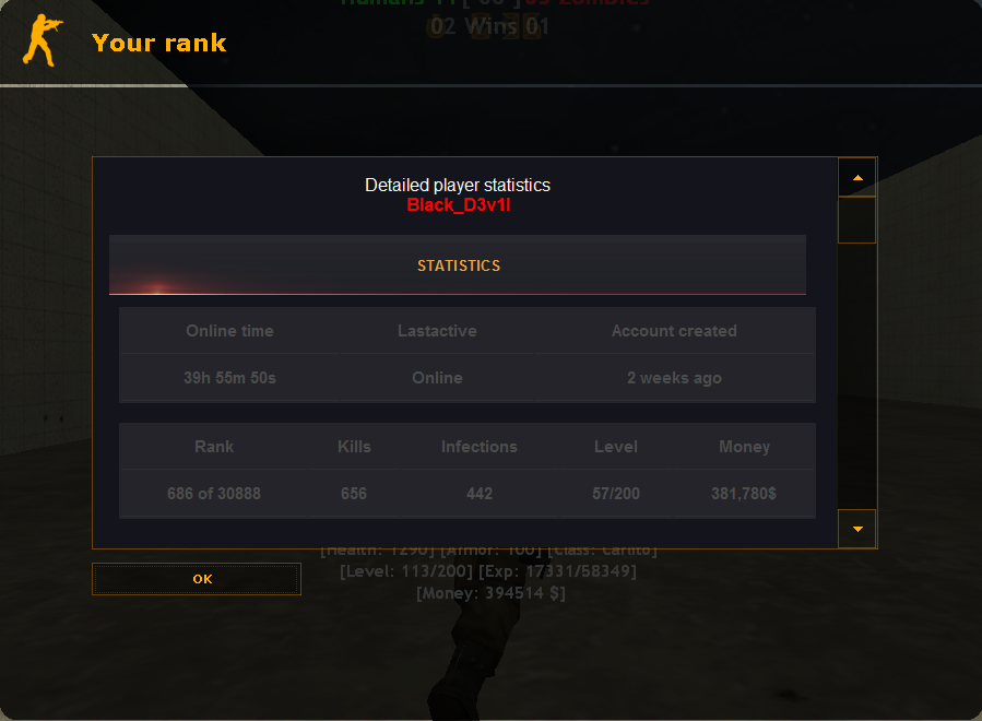 - Link of hours you played on server on gametracker.com link (minimum 40h): https://www.gametracker.com/pl…/server.csomod.com:27015/