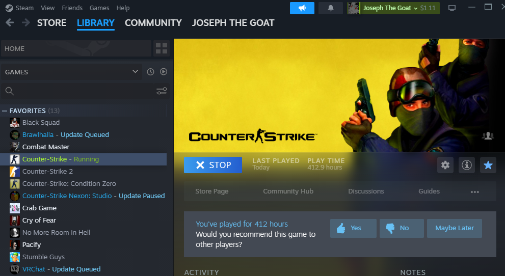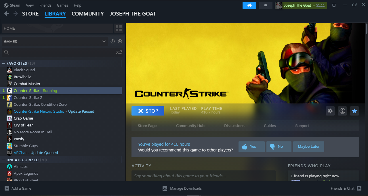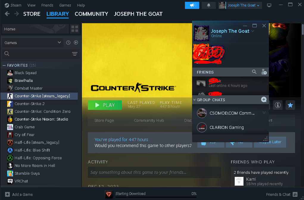 Steam Game Library Picture proof for CS 1.6 (If your profile or games are hidden):