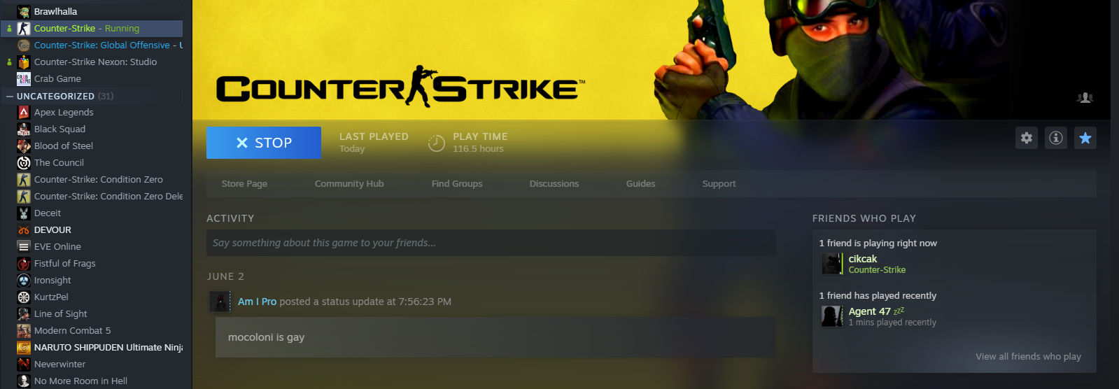 Steam Profile Link :Steam Game Library Picture proof for CS 1.6 (If your profile or games are hidden):